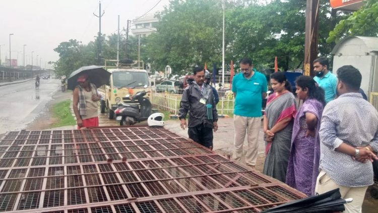 ଭୁବନେଶ୍ୱର: ବାତ୍ୟା ପ୍ରଭାବରେ ଉପକୂଳ ଓଡ଼ିଶାରେ ବର୍ଷା ହେବ । ଗତକାଲି ଭୁବନେଶ୍ୱରରେ ବର୍ଷା ହୋଇଥିଲା । ରାତିରୁ ସକାଳ ଯାଏ ବି ବର୍ଷା ହୋଇଛି । ଏହାପରେ ସକାଳୁ ସକାଳୁ ଗ୍ରାଉଣ୍ଡରେ ପହଞ୍ଚି ସ୍ଥିତି ଅନୁଧ୍ୟାନ କରିଛନ୍ତି ବିଏମସି ମେୟର ସୁଲୋଚନା ଦାସ । ଭୁବନେଶ୍ୱରେର ପାଣି ଜମୁଥିବା ତଳିଆ ଅଞ୍ଚଳରେ ସ୍ଥିତି ପରଖିଛନ୍ତି । ତାଙ୍କ ସହ ସାଙ୍ଗରେ ଥିଲେ ବିଏମସିର ବିଭାଗୀୟ ଯନ୍ତ୍ରୀ ଓ କର୍ପୋରେଟର ।