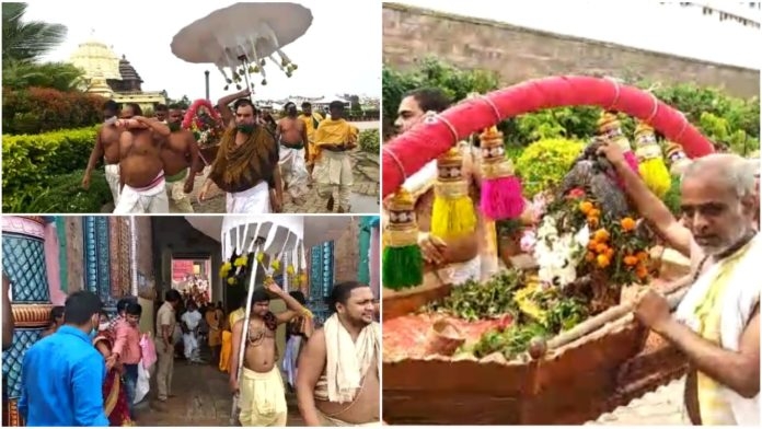 ଶ୍ରୀ ମନ୍ଦିରରେ ଶ୍ରୀଜିଉଙ୍କର ବିଶେଷ ପୂଜାନୀତି ସହ ସଂଧ୍ୟାଧୂପ ପରେ ବସ୍ତ୍ରହରଣ ପ୍ରସ୍ତାବ ସହ ମହାପ୍ରଭୁଙ୍କ ବିଜେ ପ୍ରତିମା ଶ୍ରୀନାରାୟଣ ସାଗରେର ବିଜେ କରିବେ । ଗତକାଲି ଅଠରନଳା ନିକଟରେ ଅବସ୍ଥିତ ମା ଆଲାମଚଣ୍ଡୀ ମନ୍ଦିରରୁ ସପ୍ତପୁରୀ ଭୋଗ ପାଇଁ ଆବଶ୍ୟକ ତାଡ ଶ୍ରୀମନ୍ଦିରରେ ପହଁଚି ଚତୁଃପାଶ୍ୱ ବୁଲି ତାଡ ଗୁଡିକ ରୋଷ ବେହେରଣରେ ରଖାଯାଇଥିଲା ।ଗତକାଲି ସଂନ୍ଧ୍ୟା ଧୂପ ସରିବା ପରେ ପୂଜାପଣ୍ଡା ସାମନ୍ତ ଶ୍ରୀଅଙ୍ଗରୁ ଆଜ୍ଞାମାଳ ନେଇ ଏକ ପଟୁଆରରେ ଶ୍ରୀମନ୍ଦିର ବାହାରେ ଥିବା ଦକ୍ଷୀଣକାଳି ମନ୍ଦିରକୁ ଯାଇଥିଲେ।