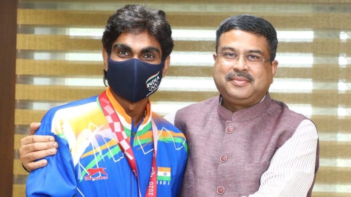 ଭୁବନେଶ୍ବର : ପାରାଅଲିମ୍ପିକ୍ସ ସ୍ବର୍ଣ୍ଣ ପଦକ ବିଜେତା ପ୍ରମୋଦ ଭଗତଙ୍କୁ ଭେଟିଲେ କେନ୍ଦ୍ରମନ୍ତ୍ରୀ ଧର୍ମେନ୍ଦ୍ର ପ୍ରଧାନ । ନୂଆଦିଲ୍ଲୀସ୍ଥିତ ସରକାରୀ କାର୍ଯ୍ୟାଳୟରେ ପ୍ରମୋଦଙ୍କୁ ଭେଟି ଅଭିନନ୍ଦନ ଜଣାଇଛନ୍ତି କେନ୍ଦ୍ର ଶିକ୍ଷାମନ୍ତ୍ରୀ ଧର୍ମେନ୍ଦ୍ର ପ୍ରଧାନ ।